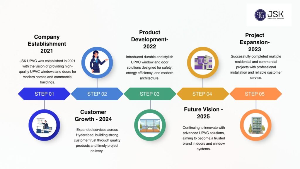 At JSK UPVC, our mission is to achieve complete customer satisfaction by delivering high-quality products that suit a wide range of tastes and budgets. We are committed to providing reliable customer support and ensuring a seamless experience for every client. Nothing makes us happier than seeing our customers satisfied with our products and services.